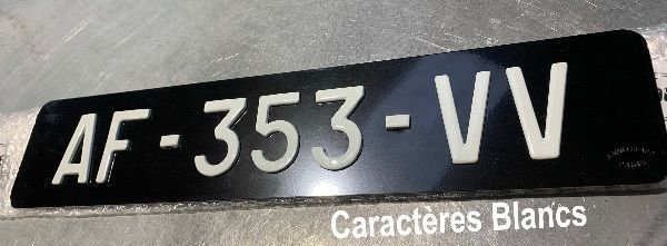 Fond de plaque noir brillant : C'est le fond classique d'une plaque d'immatriculation. Son aspect est parfois jugé plus moderne.