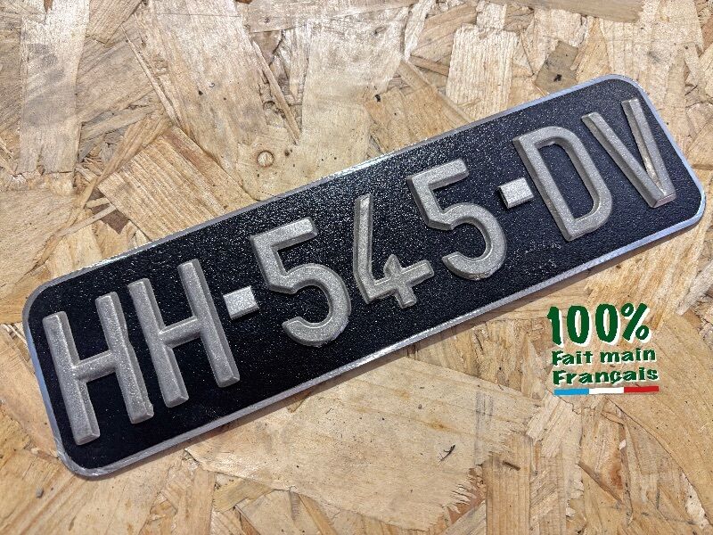 Caractères martelés : Ils sont très appréciés des clients qui désirent donner un aspect ancien à leurs plaques d’immatriculation. Ainsi, même un nouveau numéro donnera l’impression que les plaques sont installées depuis de nombreuses années.