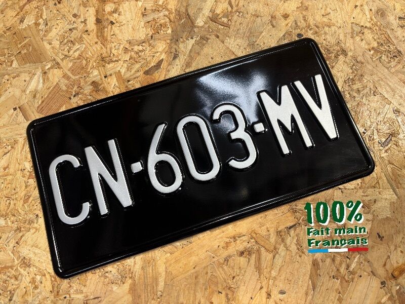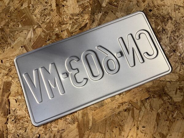 Plaque ALU EMBOUTIE et ESTAMPÉE, format 300x150 mm / 12x6", emboutissable avec une immatriculation ou un texte personnalisé.